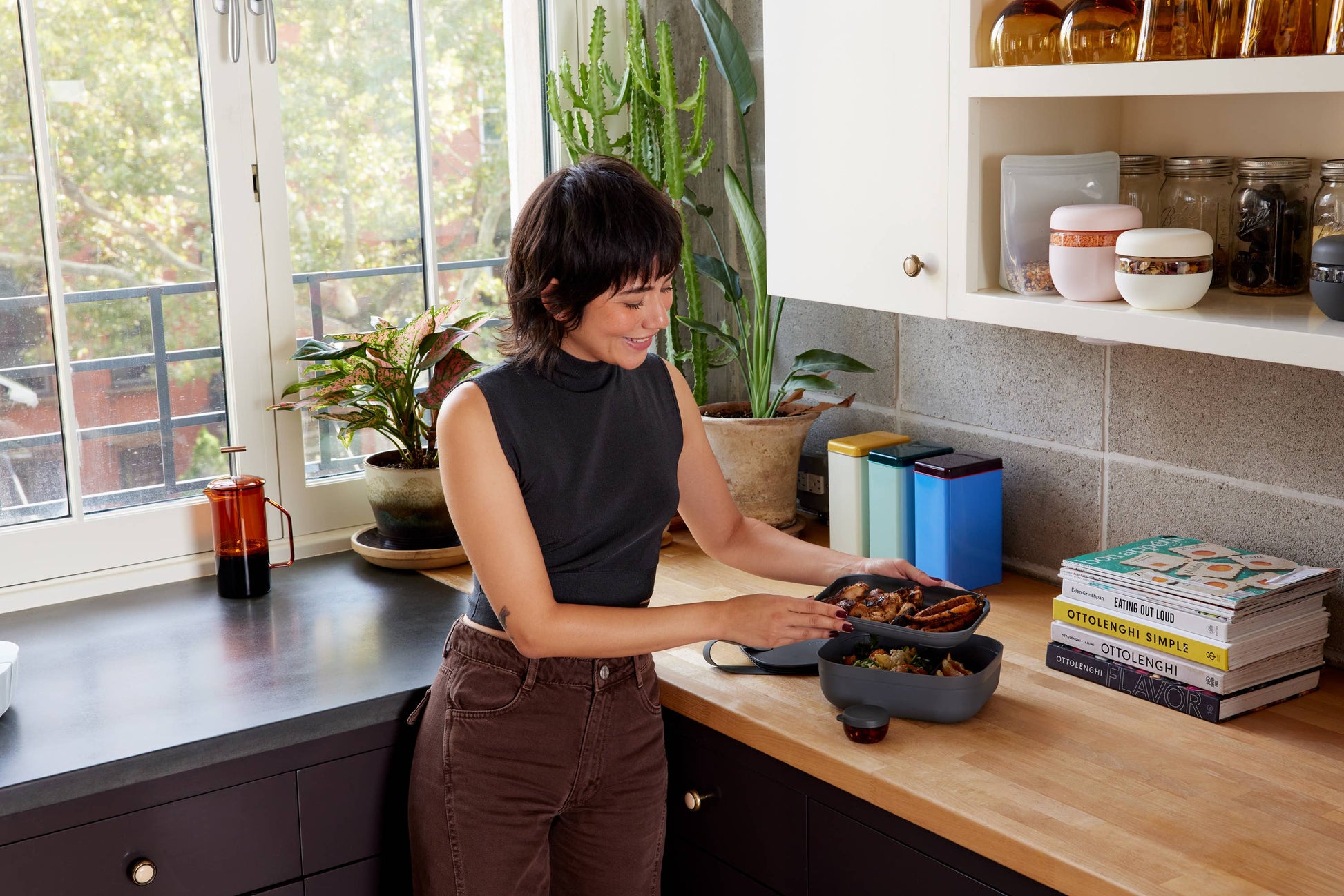 BYO lunch box with a bento -inspired kit — with 4-cup capacity and dividers, lunch stays crisp and clean.