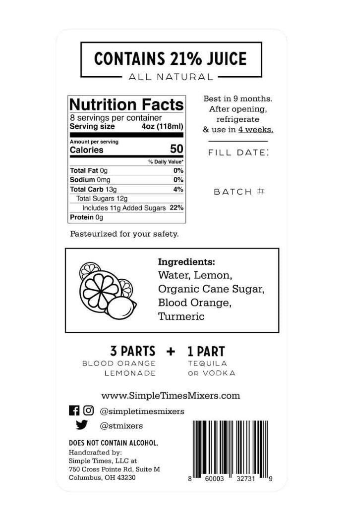 All Simple Times Mixers are proudly made in our Columbus, OH kitchen. All natural and the cleanest label you'll find on a cocktail mixer. Cheers!