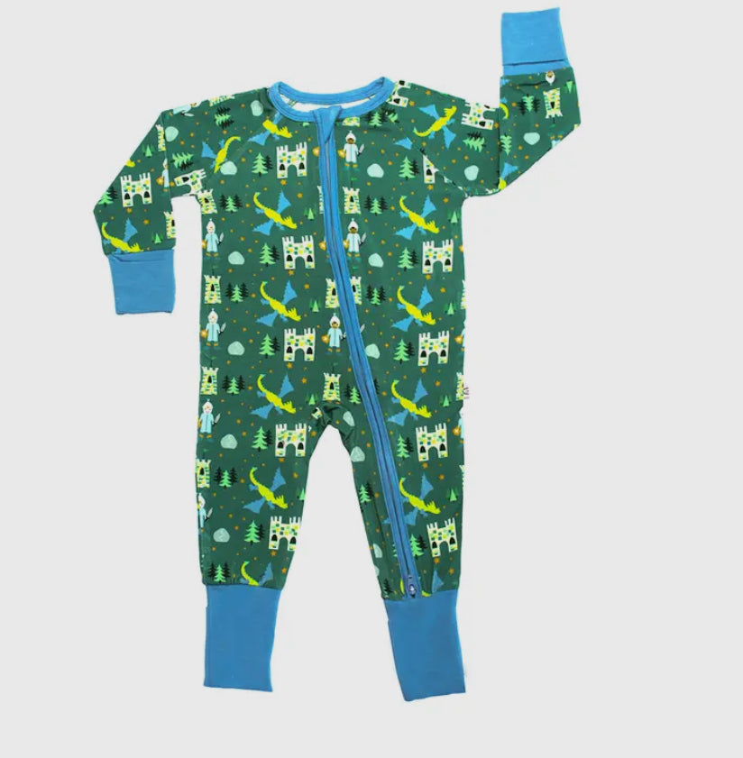 The softest bamboo baby pajamas in our Ever After pattern! Little boys will love this fairy tale themed print full of knights and dragons.
